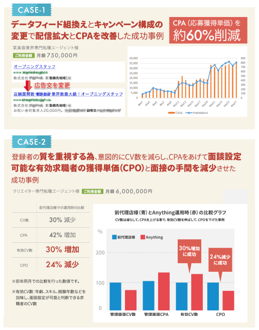株式会社Anythingでは、このIndeedで掲載が可能なクリック課金型広告を運用する